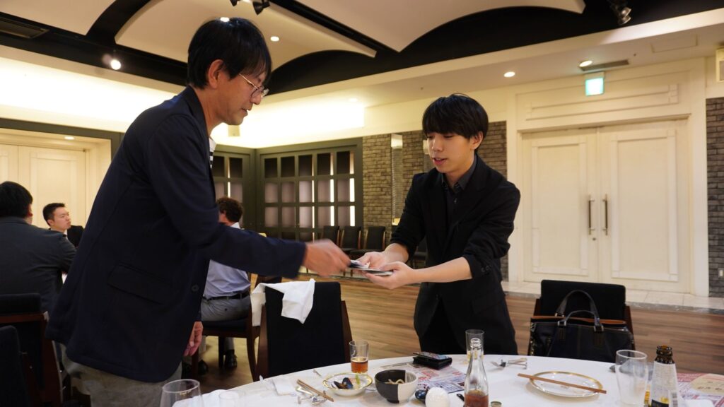 2025.11.19 2025年「早慶合同懇親会」が開催されました! 新着情報 Post Share Hatena Line RSS feedly Pin it note この記事のタイトルとURLをコピーする 10月8日(水) 、ホテルグランビュー高崎にて「早慶合同懇親会」が開催されました。昨年に続いての開催でしたが、総勢50名の塾員や早稲田OB・OGに集まっていただきました。 例年は早慶応援合戦で盛り上がってきましたが、本年は趣向を変え、慶應義塾大学奇術愛好会の現役塾生を招いてのマジックショーを開催いたしました。各テーブルを回って目の前で繰り広げられる奇想天外なマジックに、参加者の全員が目を丸くしたことでしょう。 2025年「夏の夜の懇親会」を開催しました! 前の記事